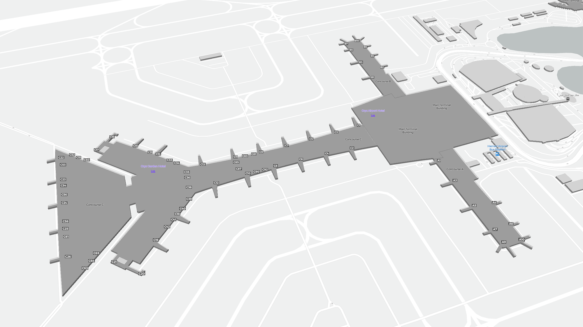 Dette er et zoombart kort over Doha (DOH). Kortet giver dig et overblik over det udendørs område med terminaler, parkeringspladser, og på nogle lufthavne også detaljer om porte, biludlejningsfaciliteter og andre faciliteter, når du zoomer ind.