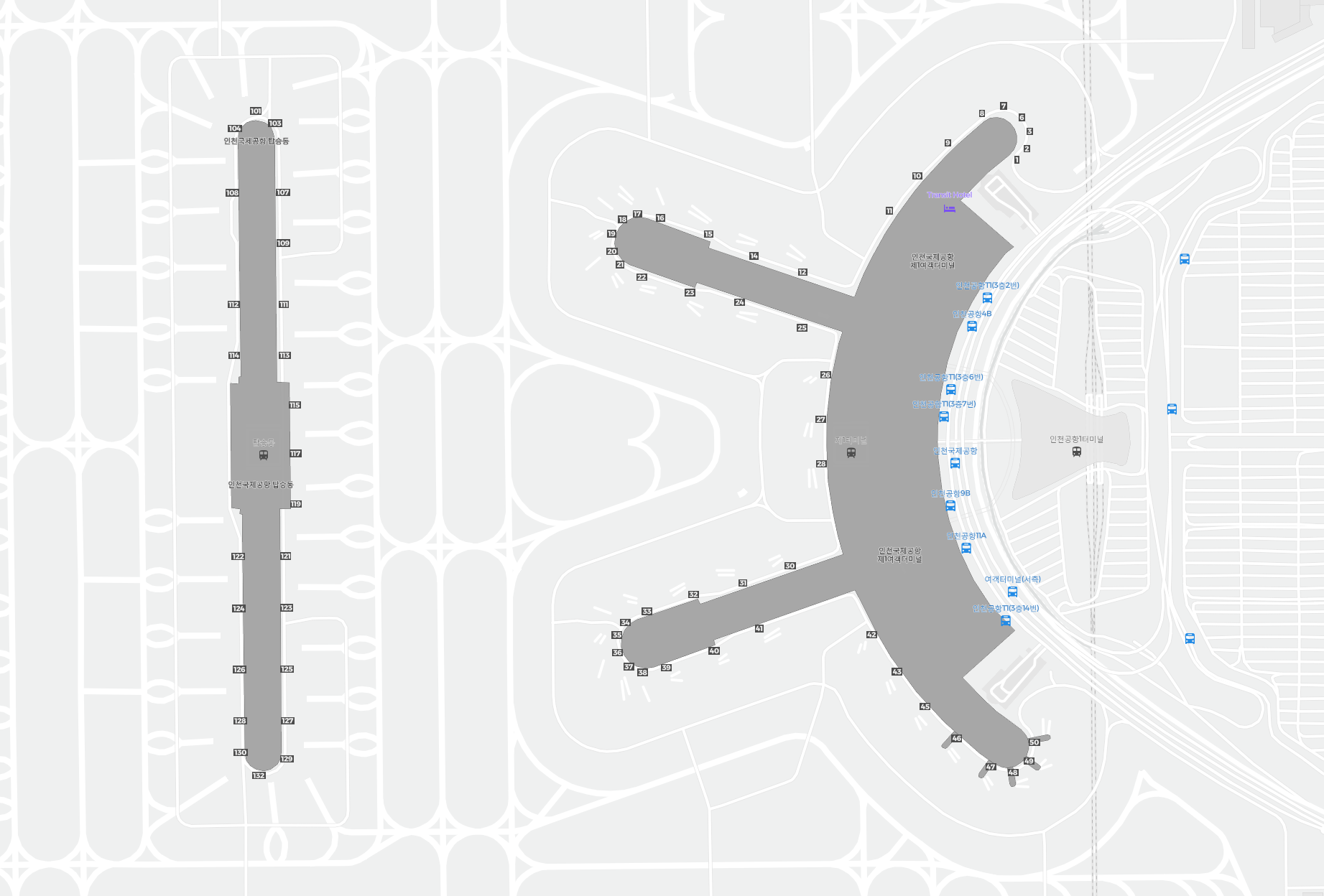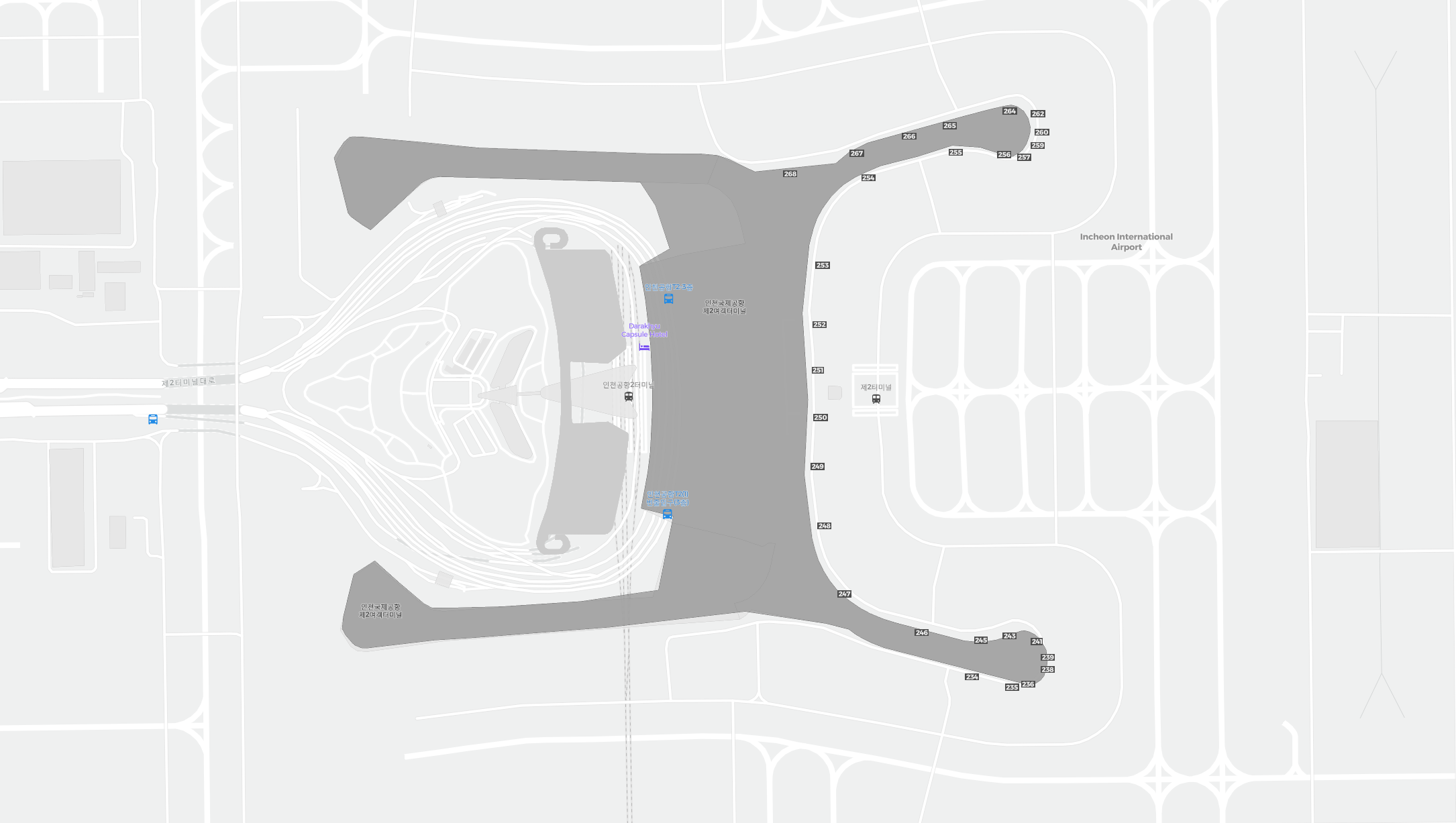 Dette er et zoombart kort over Incheon (ICN). Kortet giver dig et overblik over det udendørs område med terminaler, parkeringspladser, og på nogle lufthavne også detaljer om porte, biludlejningsfaciliteter og andre faciliteter, når du zoomer ind.