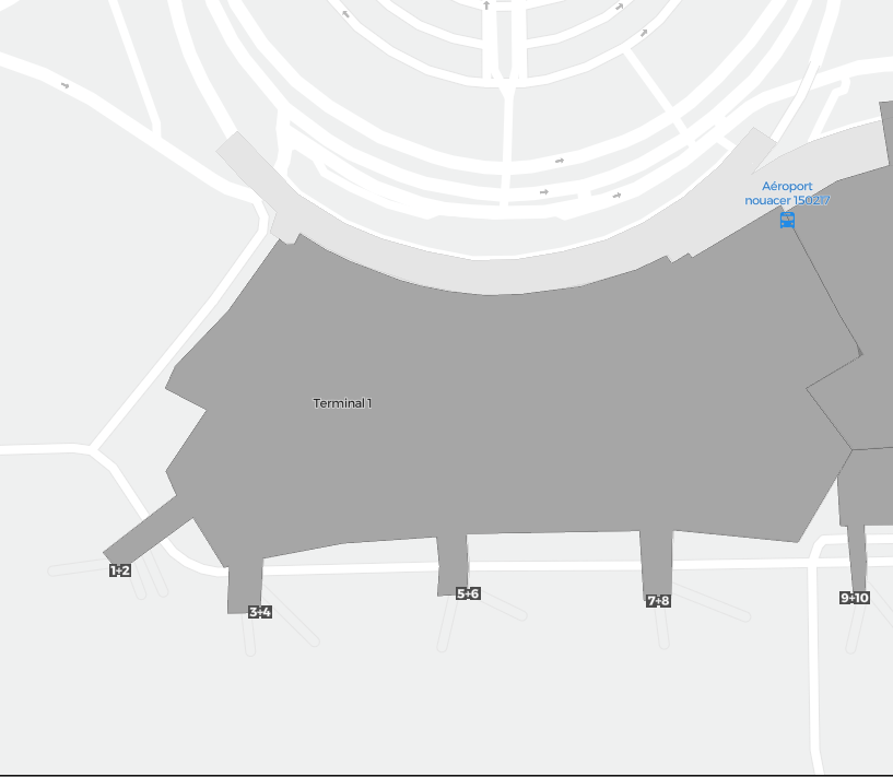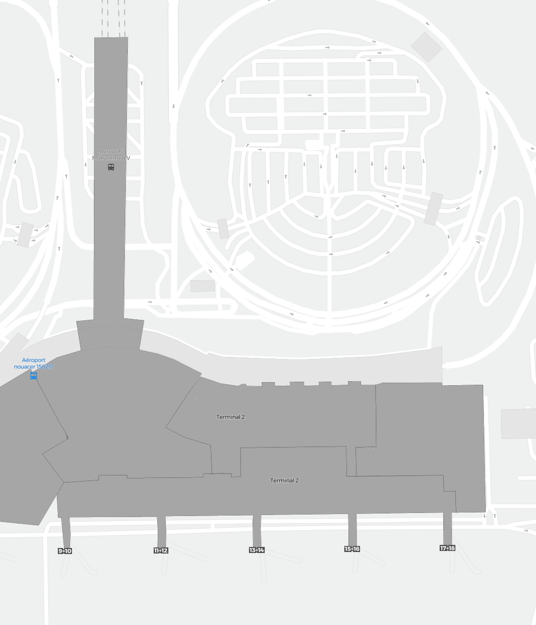 Dette er et zoombart kort over Casablanca (CMN). Kortet giver dig et overblik over det udendørs område med terminaler, parkeringspladser, og på nogle lufthavne også detaljer om porte, biludlejningsfaciliteter og andre faciliteter, når du zoomer ind.