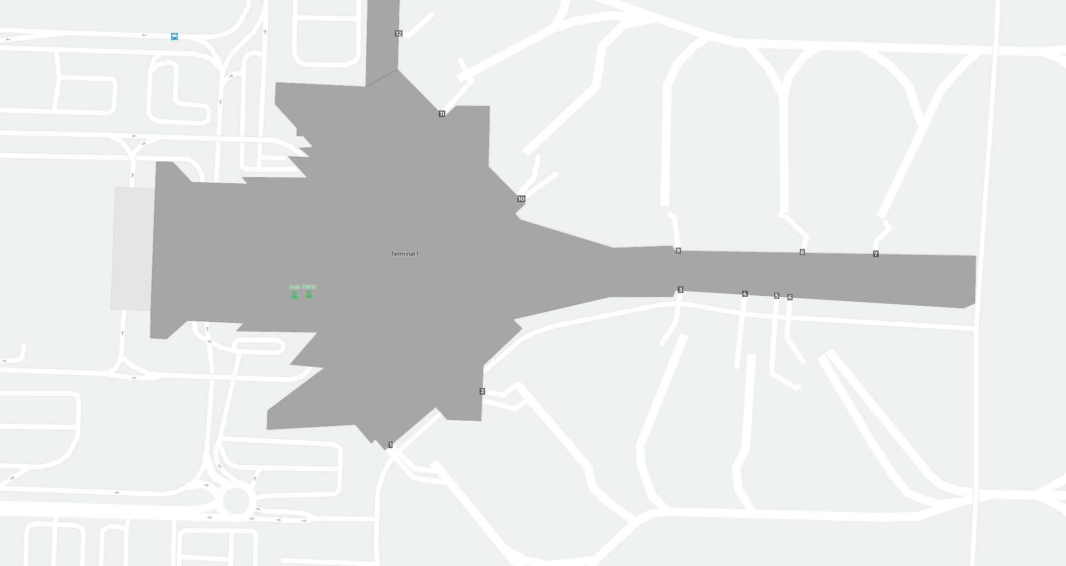 Dette er et zoombart kort over Kuwait (KWI). Kortet giver dig et overblik over det udendørs område med terminaler, parkeringspladser, og på nogle lufthavne også detaljer om porte, biludlejningsfaciliteter og andre faciliteter, når du zoomer ind.