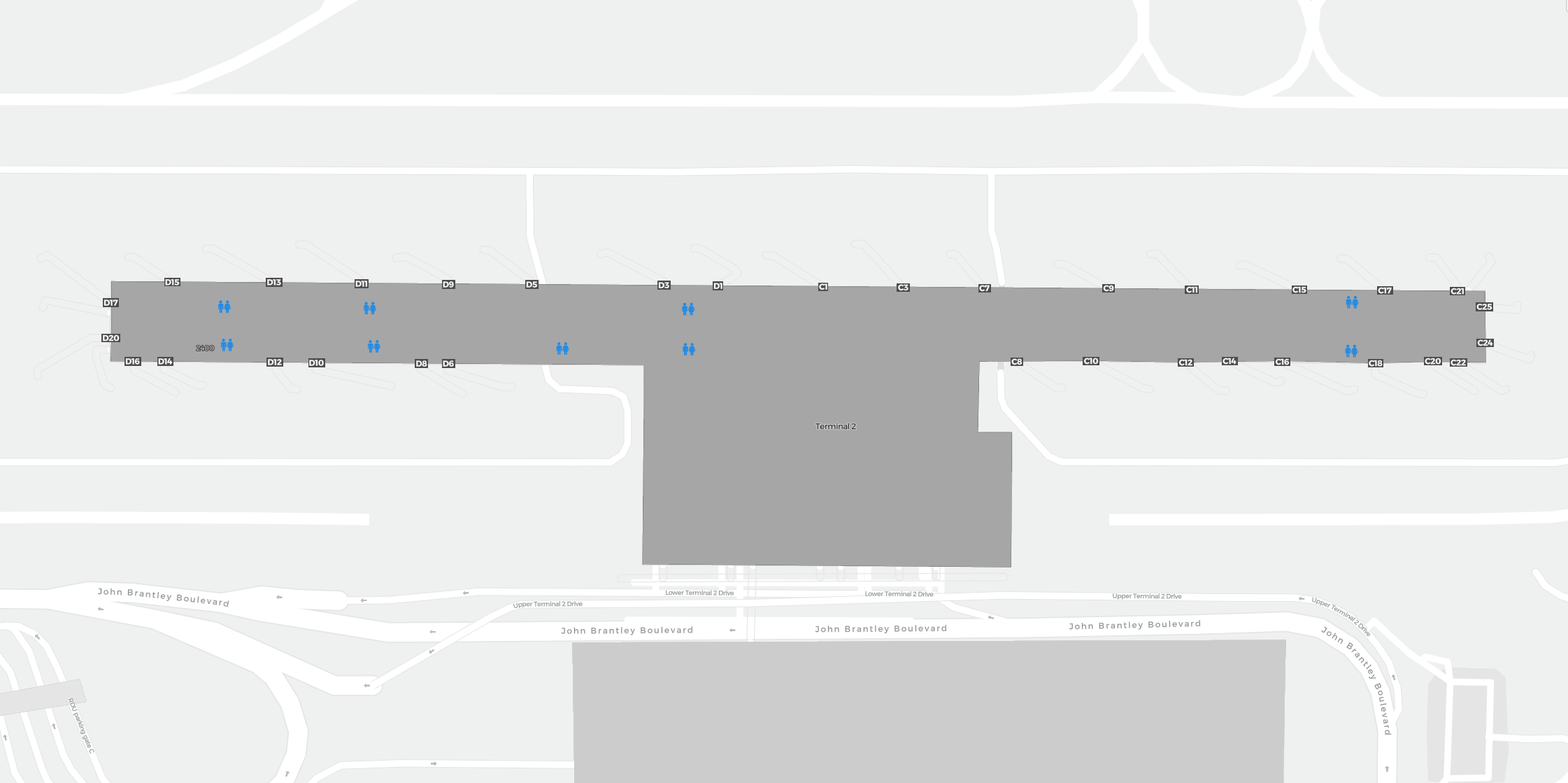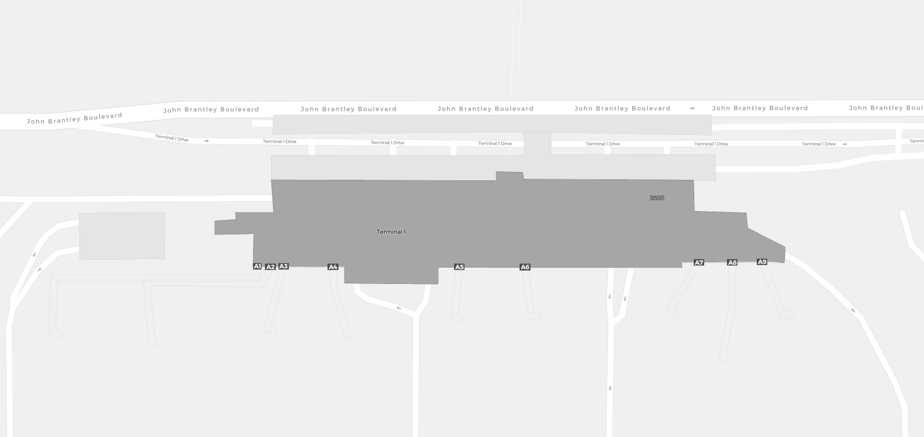 Dette er et zoombart kort over Raleigh (RDU). Kortet giver dig et overblik over det udendørs område med terminaler, parkeringspladser, og på nogle lufthavne også detaljer om porte, biludlejningsfaciliteter og andre faciliteter, når du zoomer ind.