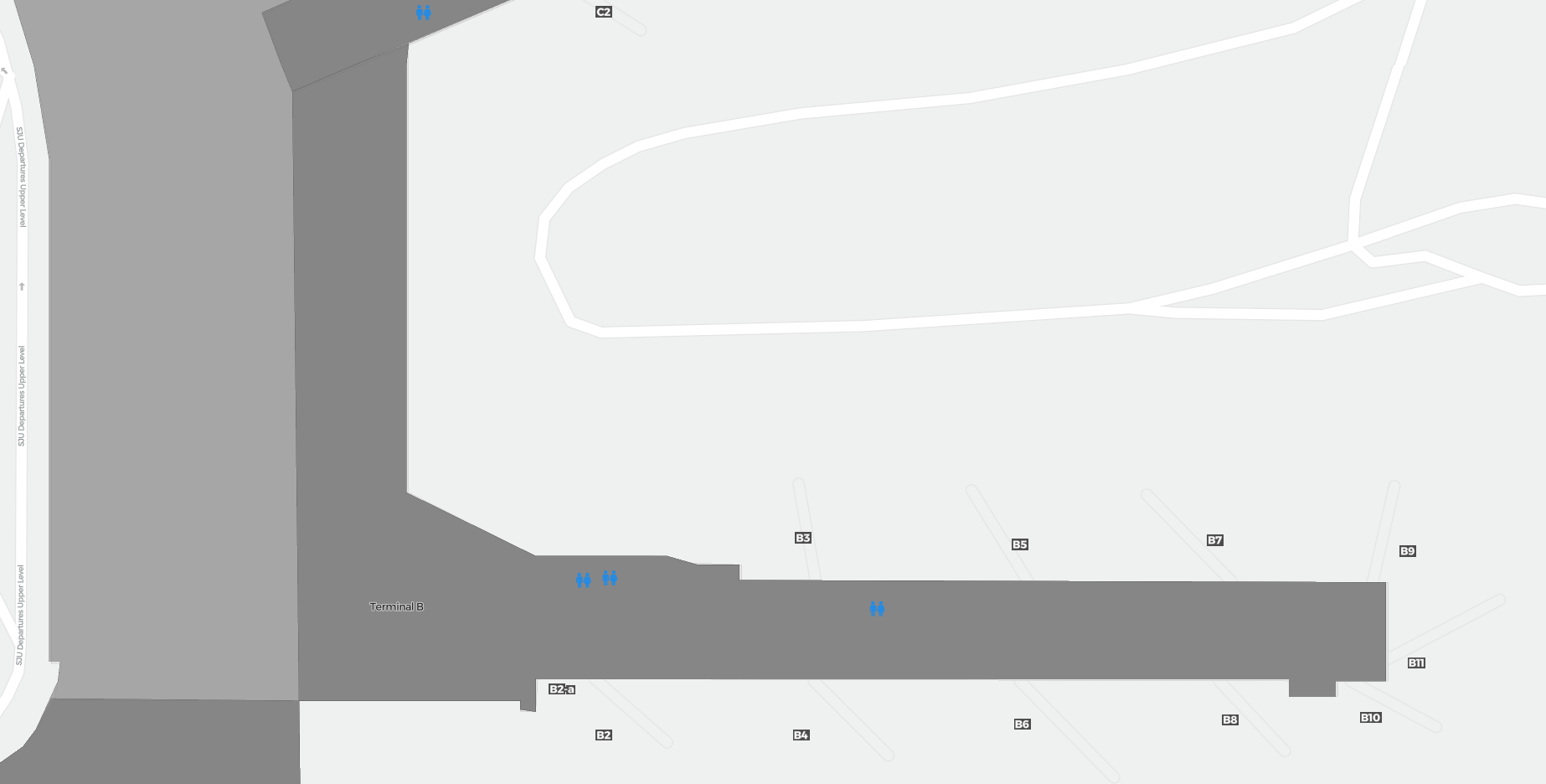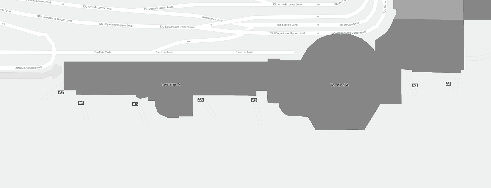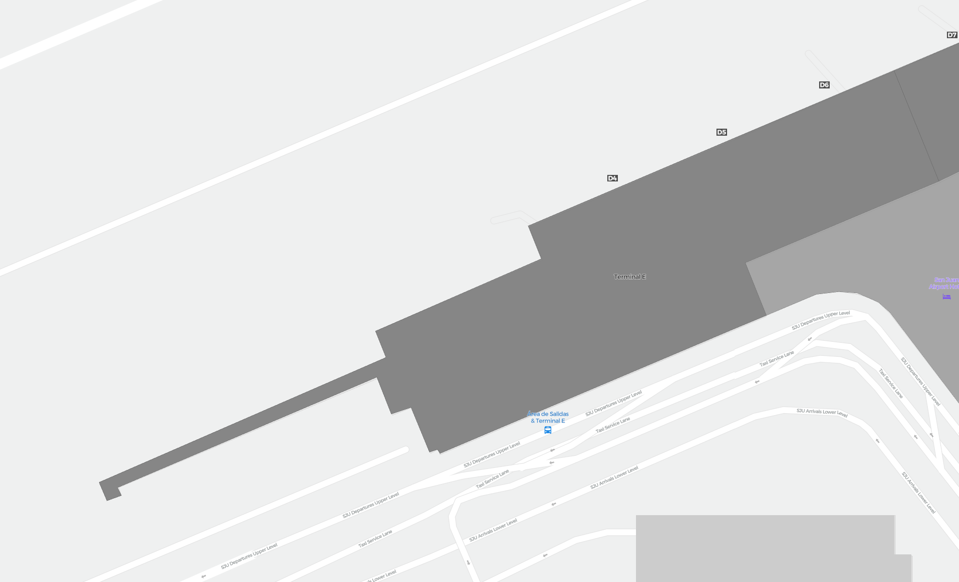 Dette er et zoombart kort over San Juan (SJU). Kortet giver dig et overblik over det udendørs område med terminaler, parkeringspladser, og på nogle lufthavne også detaljer om porte, biludlejningsfaciliteter og andre faciliteter, når du zoomer ind.
