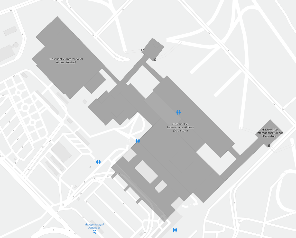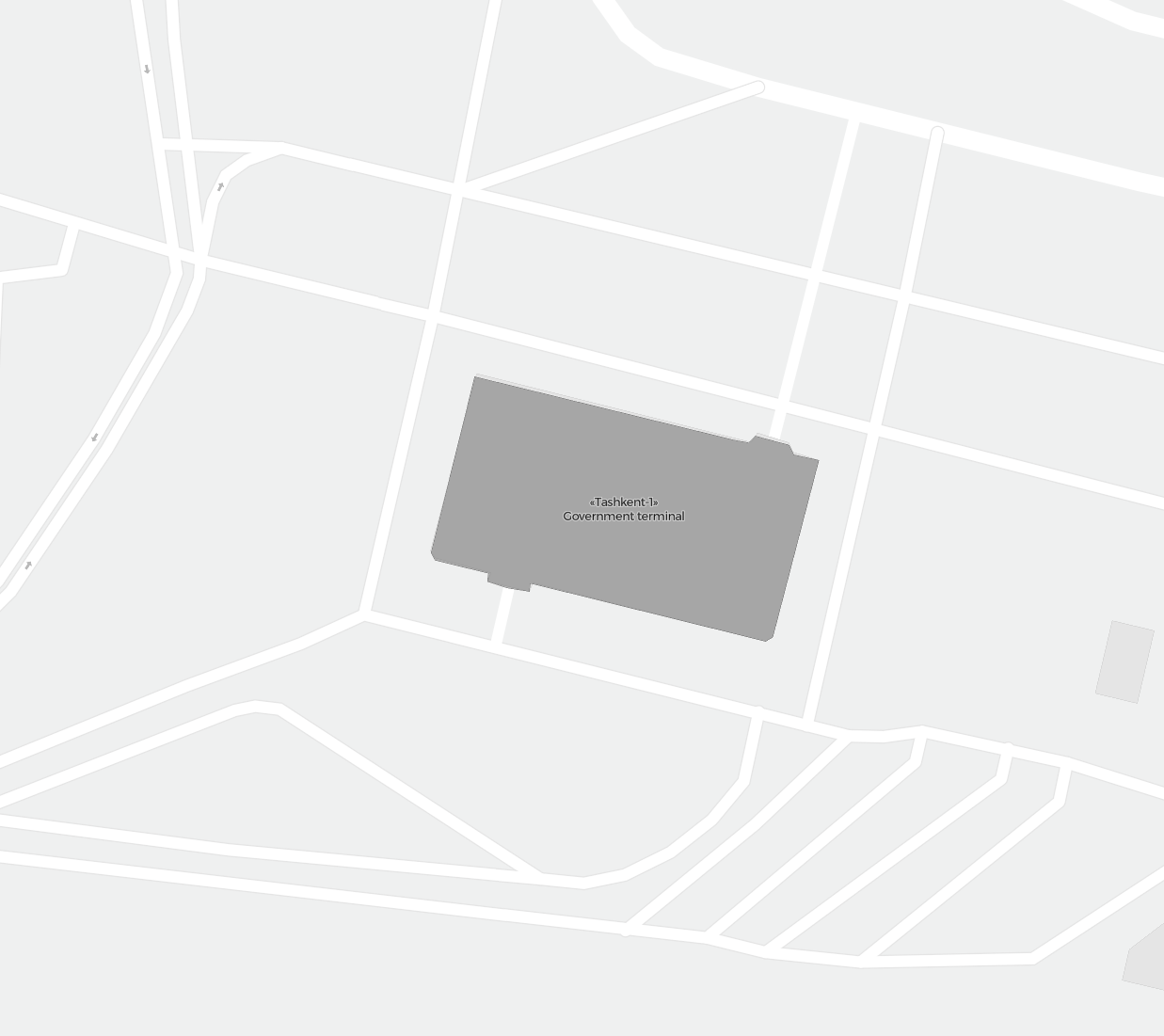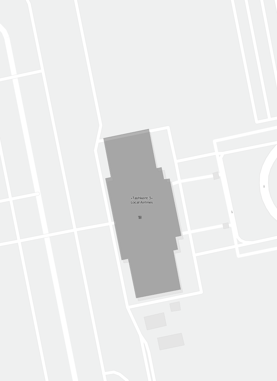 Dette er et zoombart kort over Tasjkent (TAS). Kortet giver dig et overblik over det udendørs område med terminaler, parkeringspladser, og på nogle lufthavne også detaljer om porte, biludlejningsfaciliteter og andre faciliteter, når du zoomer ind.